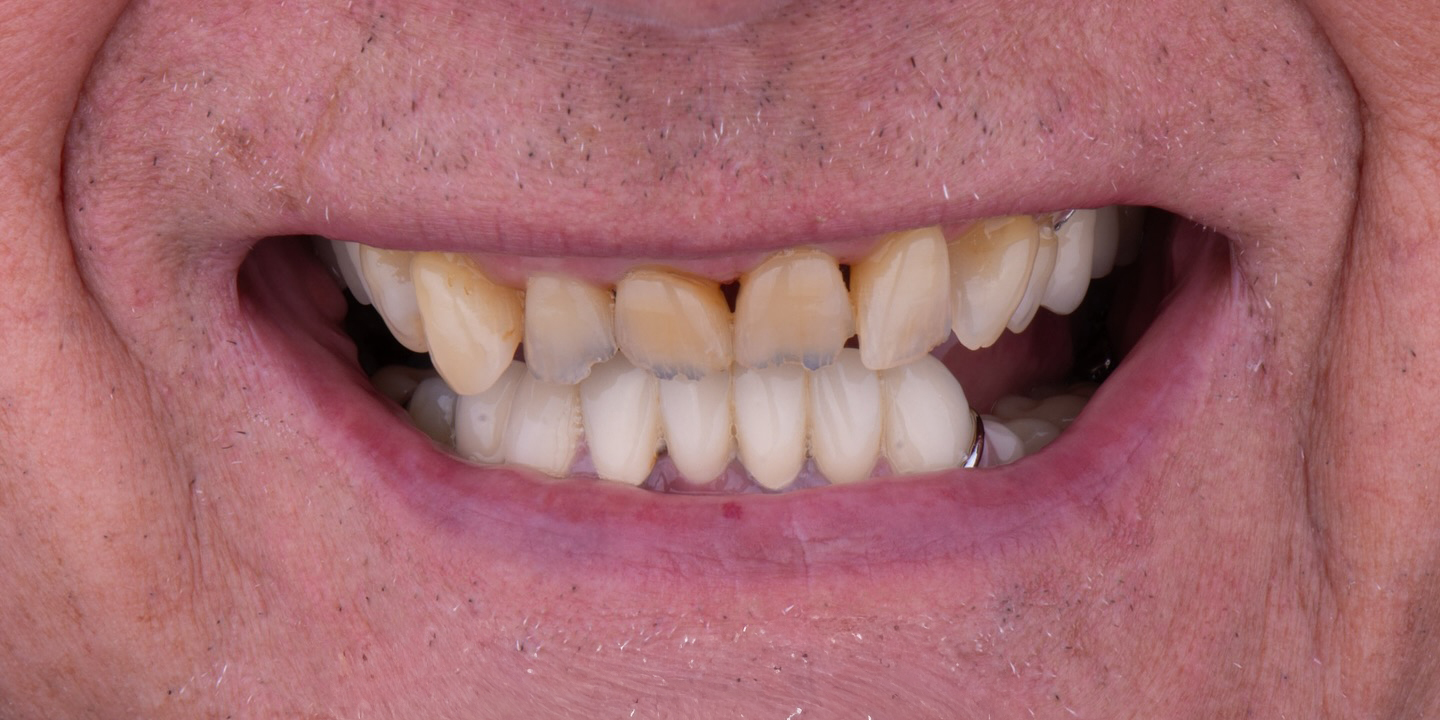 After 20 years, most veneers require replacement due to material wear and bonding weakening. New restorations restore function, color harmony, and aesthetic balance.